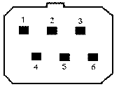 ( 1: Bat+, 3: Signál IN, 2: signál OUT, 4: Bat+, 6 : GND)